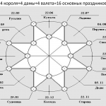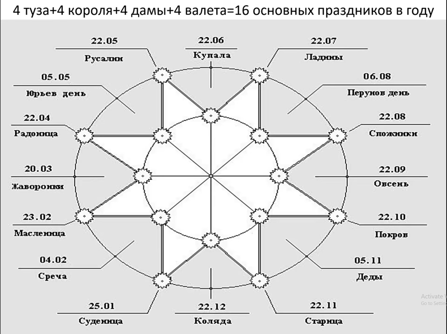 - Обучение пользования календарём на “Senet“. Просумируйте числа входящие в дату и вы получите название и номер дня недели. Обратите внимание на пятницы (зеленую линию), это и есть маркировка Senet. Надо убрать старшие разряды (потому что они кодировались цветом). Неделя имела 9 дней. Всего три тредневки. В первые две тредневки 2 дня работали 1 день отдыхали, Третью тредневку посвящали отдыху, Богу и хобби. Каждые 3 недели по 9 дней это цикл Луны.